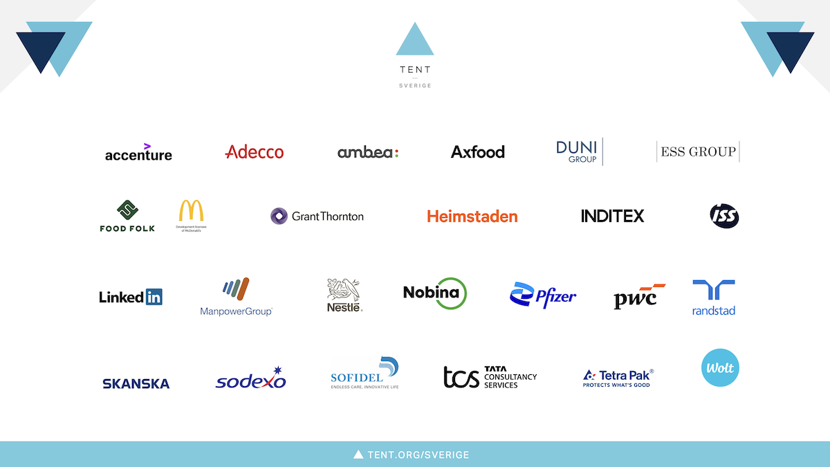 The inaugural member companies of Tent Sverige stepping up to integrate people with refugee background into the local workforce represent many of the largest employers in the country, from major Swedish employers to the biggest international brands, including: Accenture, Adecco Group, Ambea, Axfood, Duni Group, ESS Hotel Group, Food Folk / McDonald’s, Grant Thornton, Heimstaden, Inditex, ISS, LinkedIn, ManpowerGroup, Nestlé, Nobina, Pfizer, Pwc, Randstad, Skanska, Sodexo, Sofidel, Tata Consultancy Services, Tetra Pak, Wolt.